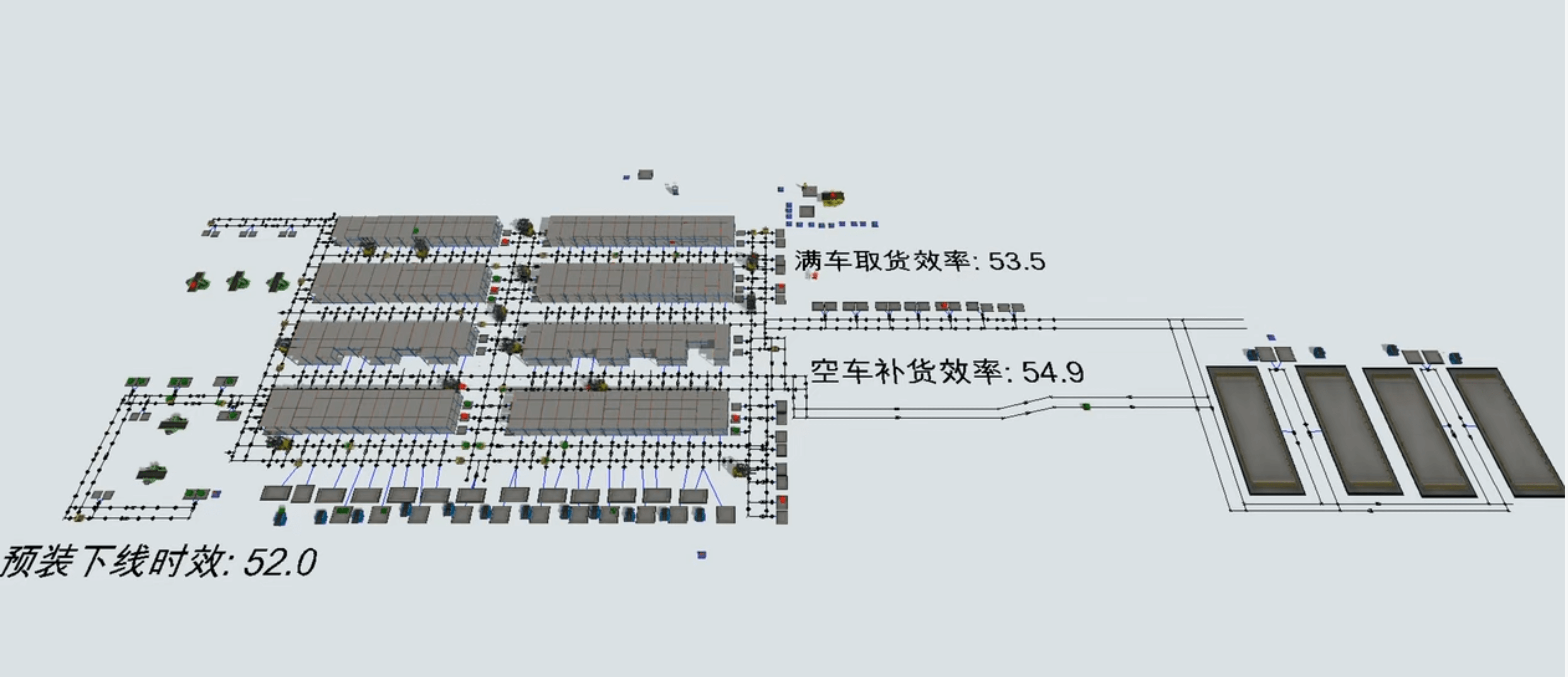 1. 建模准备:明确线边库布局、配送节点及设备参数,在FlexSim中搭建线边库、配送工位等基础场景,导入AGV与无人叉车模型,匹配实际设备尺寸及运动属性。