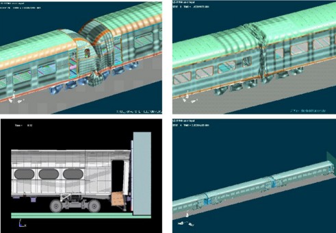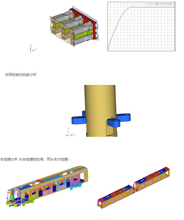 高速列车运行系统动力学分析。高速列 车穿隧道的冲击波响应,高速列车运行中引起的空气脉动力对声屏障结构的作 用,车辆过桥的动态响应等及其它瞬态 高速过程仿真。