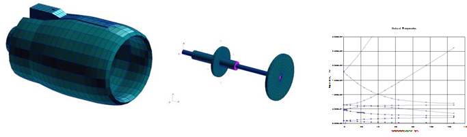 直接线性或非线性瞬态分析可进行转子叶片的动力学仿真,保证结构的强度及 避免振动超限。MD Nastran 转子动力学模块的一个优势在于它是在 MSC.Nastran 原有成熟稳定 求解系列(SOL101, SOL107, SOL108, SOL109, SOL110, SOL111, SOL129)基础上实现的,这是其它软件所不能比拟的。MD Nastran 的转子动力学特性分析,考虑了 陀螺效应和挤压油膜阻尼器模型。用来分析转子的涡动模态、临界转速、频率响应、瞬态响应以及转子的静态特性等。可以分析航空发动机、压缩机、离心机、汽轮机、