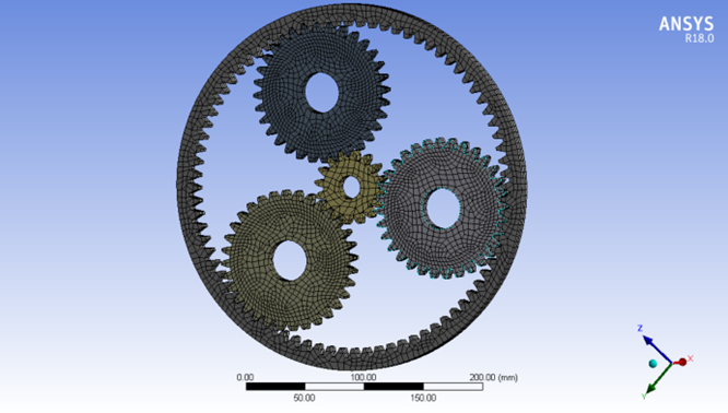 本次报告以2K-H行星减速器行星轮系为例,以减速器的核心传动装置为研究对象,运用三维参数化设计软件Solidworks建立了行星轮系的数字化模型,然后将其导入有限元分析软件ANSYS Workbench中,对模型进行了静力学有限元分析,分析了在给定的工作状况下它的静力学特征。最后对行星轮系传动系统进行了模态分析,确定了装配体的振动特征、模态及振动薄弱环节,以便帮助改进系统设计和避免共振,为齿轮传动动态设计提供了依据。