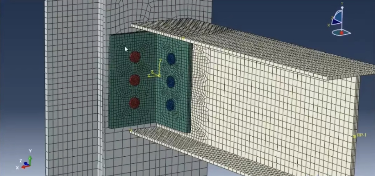 对钢梁、钢柱及螺栓进行网格离散。采用六面体结构化网格或四面体非结构化网格,关键区域(如螺栓孔周边、梁柱连接受力集中处 )加密网格,平衡计算精度与效率,网格模型如图中所示的细密网格分布。