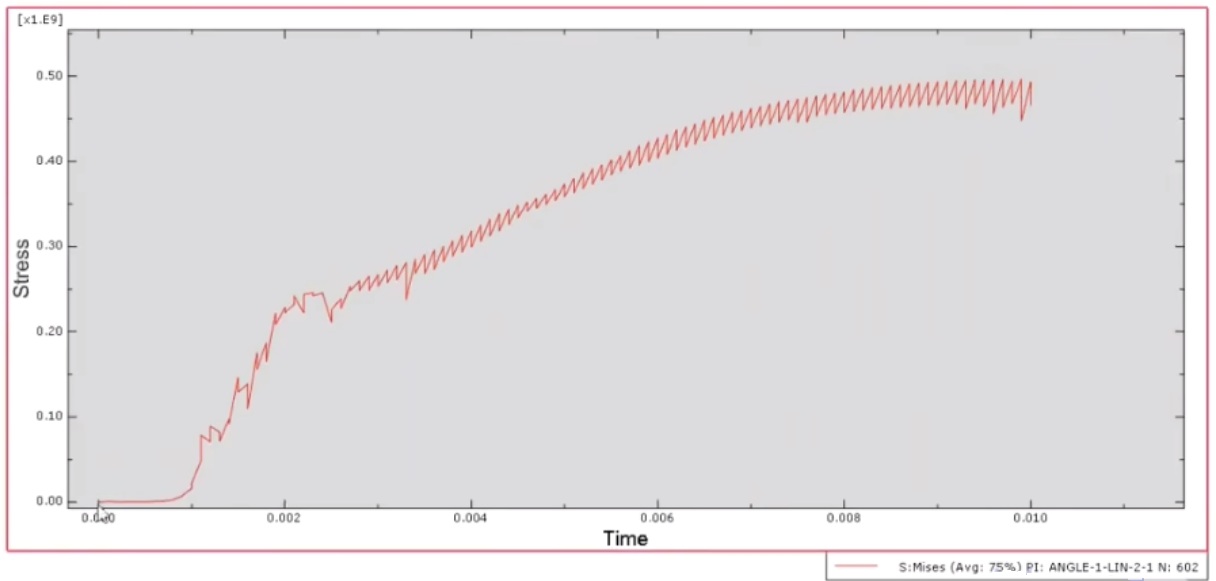提取关键部位(如螺栓、钢梁跨中 )的荷载 - 应力(位移)曲线(如图中应力 - 时间曲线形式,将时间替换为荷载 )。曲线初期呈线性(弹性阶段 ),荷载增大至一定程度,因材料非线性、接触滑移等,曲线出现非线性变化,反映节点从弹性到弹塑性的力学转变,用于评估节点承载能力与延性。