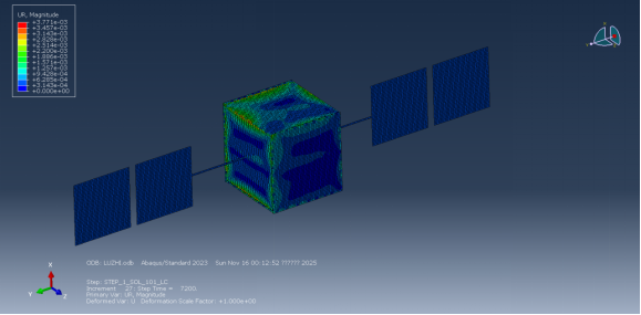 首先,通过专业软件模拟卫星在太空中的“体温”变化。太空环境极端,卫星向阳面可能超过150°C,背阳面可能低于-150°C。分析会计算出卫星在特定工作状态下,全身各部位的具体温度分布情况,也就是得到一个详细的“体温计读数”。第二步:算变形(结构分析)