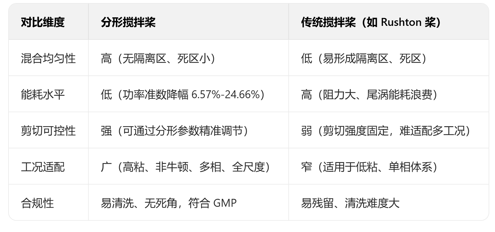 分形搅拌桨的核心优势源于其分形几何的自相似性、空间填充性与穿流结构设计,相比 Rushton 桨等传统搅拌桨,在流体混合性能、能耗控制、工况适配性等方面呈现显著优势,结合实验数据与应用场景,具体可归纳为以下五大核心维度: