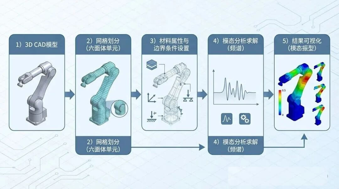 机械臂振动模态分析是一项系统性工程技术,涉及理论分析、仿真计算、实验验证、优化设计等多个环节。