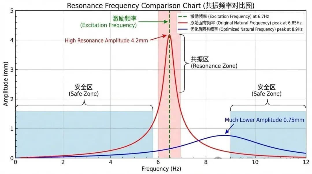 工程层面:避频设计是解决共振问题的首选策略,结构优化需要综合考虑刚度-质量-成本多重约束,阻尼减振技术为特殊工况提供了有效解决方案。