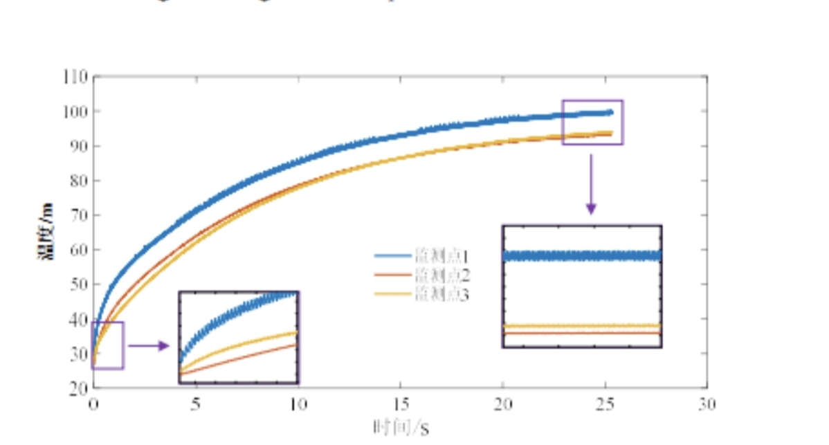 从上图中可以看出,太阳轮在 30s 时达到稳定状态,行星轮在 96s 时达到稳定状态,内齿圈在 130s时达到稳定状态。太阳轮达到稳定的时间要早于行星轮而内齿圈达到稳定状态需要的时间最久。这是因为太阳轮转速高、摩擦热流密度大,齿轮系统运转初期温升速率高,这使得对流换热也快速增加,因此使太阳轮能够较快的达到稳定状态,而行星轮和内齿圈转温升速度较慢,换热量相对较小,达到稳定所需的时间也更多